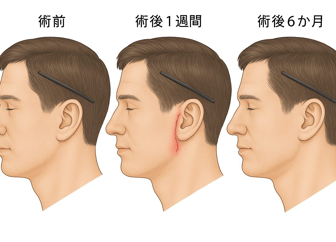 1週間で腫れが落ち着き、6か月経った頃には傷跡もほとんど目立たちません。