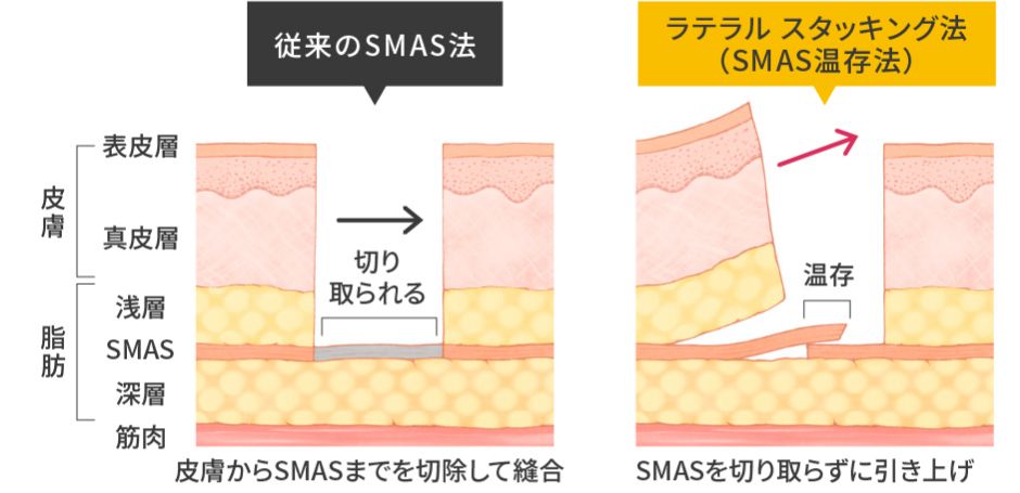 そこで当院では「ラテラル スタッキング法(SMAS温存法)」を採用しています。