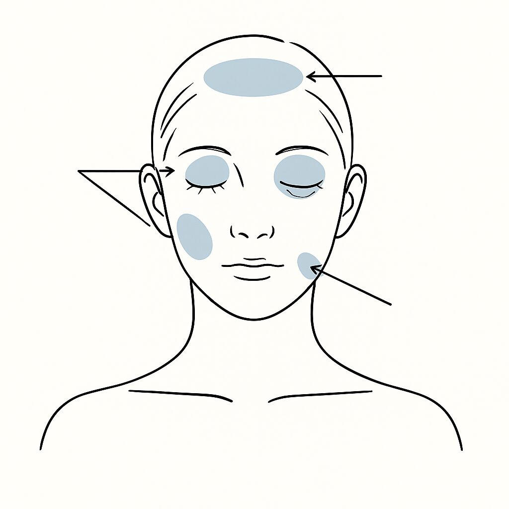 特にこめかみ・ゴルゴ線・頬は凸凹のリスクが少なく効果的です。