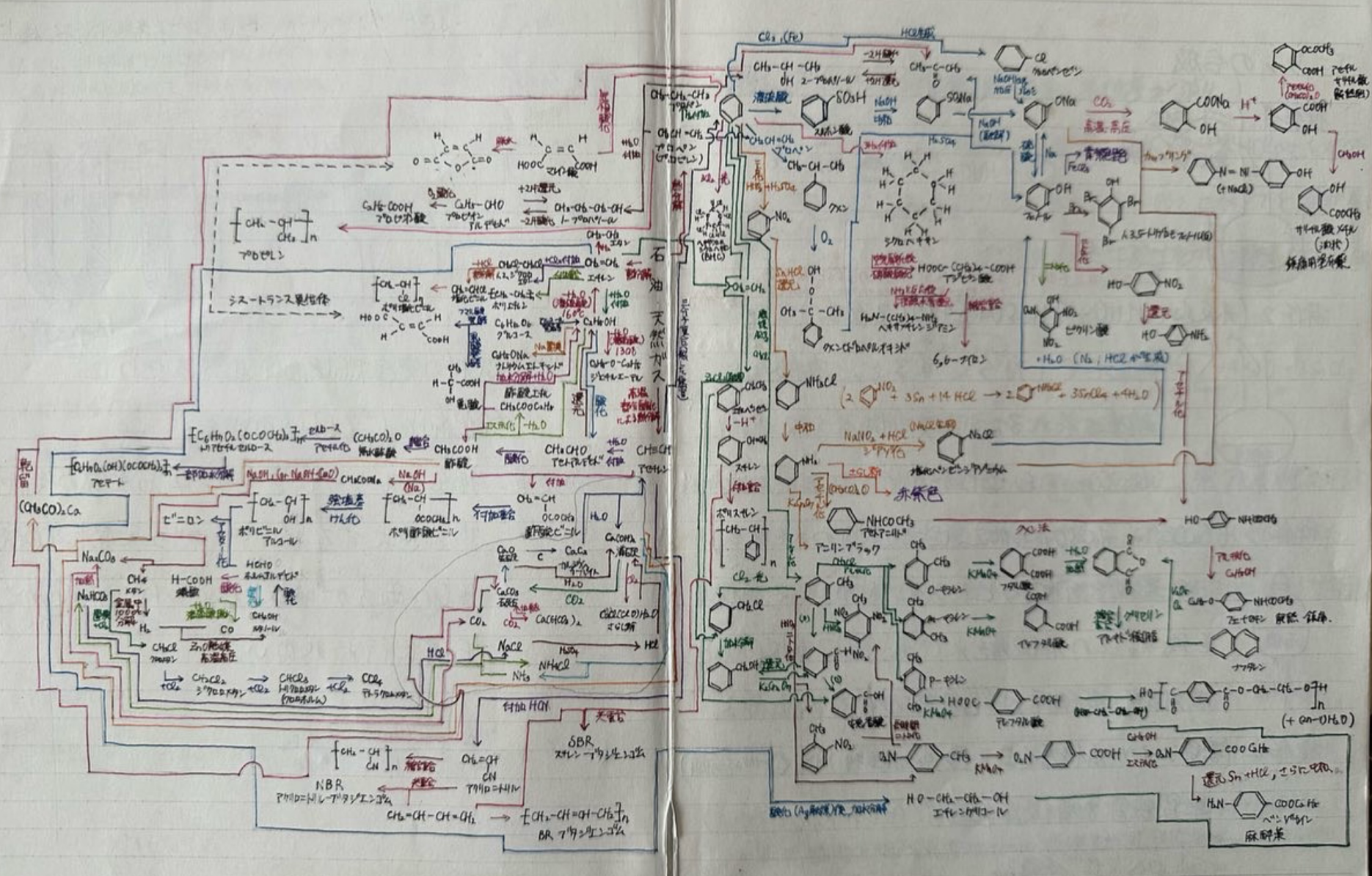ベンゼン環の中に、王者の風格・気品・誠実・富貴の意味がある牡丹の花がある。それがTHE FIRST CLINIC(TFC)のロゴが表しているものです。TFC統括院長の惟村公郁医師は化学者の家系に生まれたため、化学というものは惟村医師にとっては馴染みの深いものでした。そんな中、惟村医師はベンゼン環が理由もなく好きでクリニックのロゴにしようと着目しました。このノートの写真は惟村医師の18歳の時のものになります。